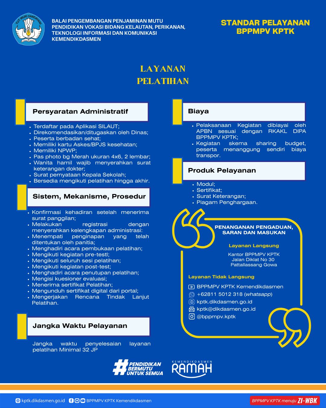 - Pelaksanaan kegiatan dibiayai oleh APBN sesuai dengan RKAKL DIPA BPPMPV KPTK